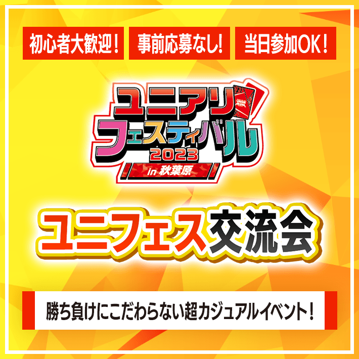 ユニオンアリーナを始めたばかりのファンの対戦・交流を目的とした、勝ち負けにこだわらない“超”カジュアルイベントです。