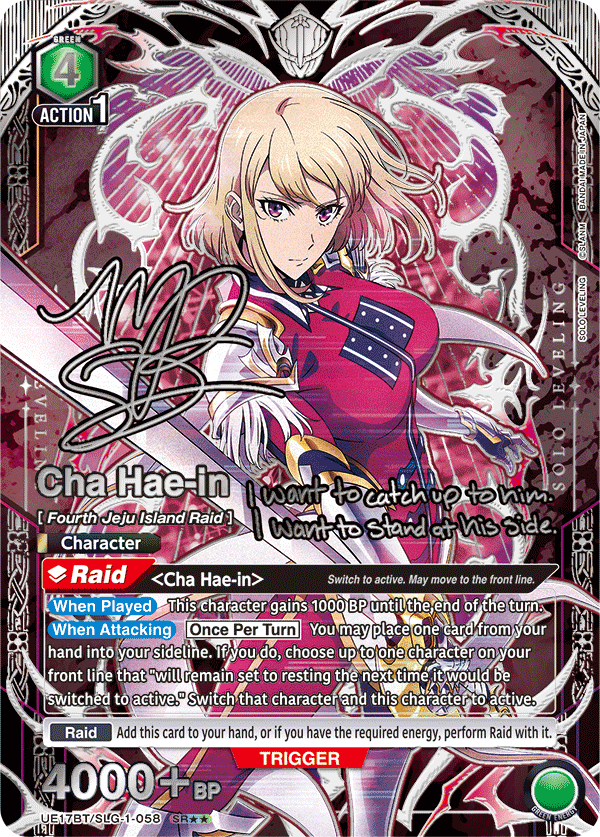 The first-ever “Serial-Numbered Hand-Signed Action Point Card” in the English version of UNION ARENA are here! In SOLO LEVELING, they feature hand-signed autographs from Aleks Le and Michelle Rojas!